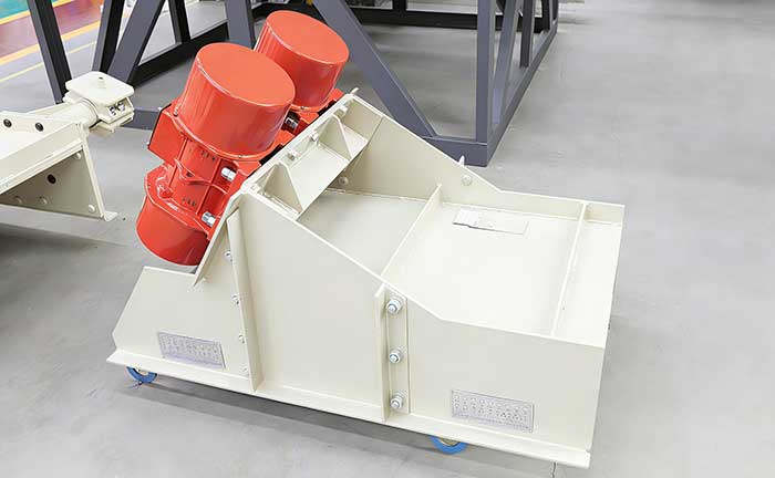When working, the motor of the GZY vibrating feeder rotates in a self-synchronous and reverse direction, and drives the eccentric block to vibrate through the rotation of the connected elastic rotor shaft. The motor does not participate in vibration, and the exciting force generated by driving the box-type vibrator makes the materials in the bin move forward in a throwing manner along the excitation angle.