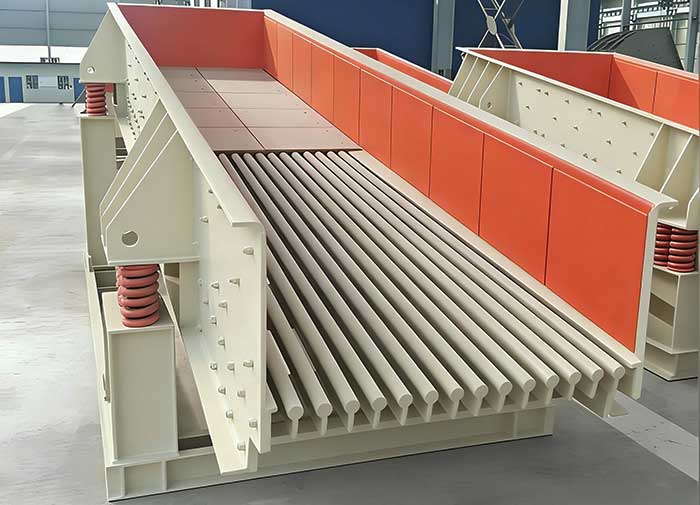 ZSW vibrating feeders can be divided into two types: steel plate structure and grate structure. Steel plate structure feeders are mostly used in sand and gravel production lines to evenly feed all materials into crushing equipment; The feeder with a grate structure can perform coarse screening on materials, making the system more economical and reasonable in preparation. It has become an essential equipment in crushing and screening.